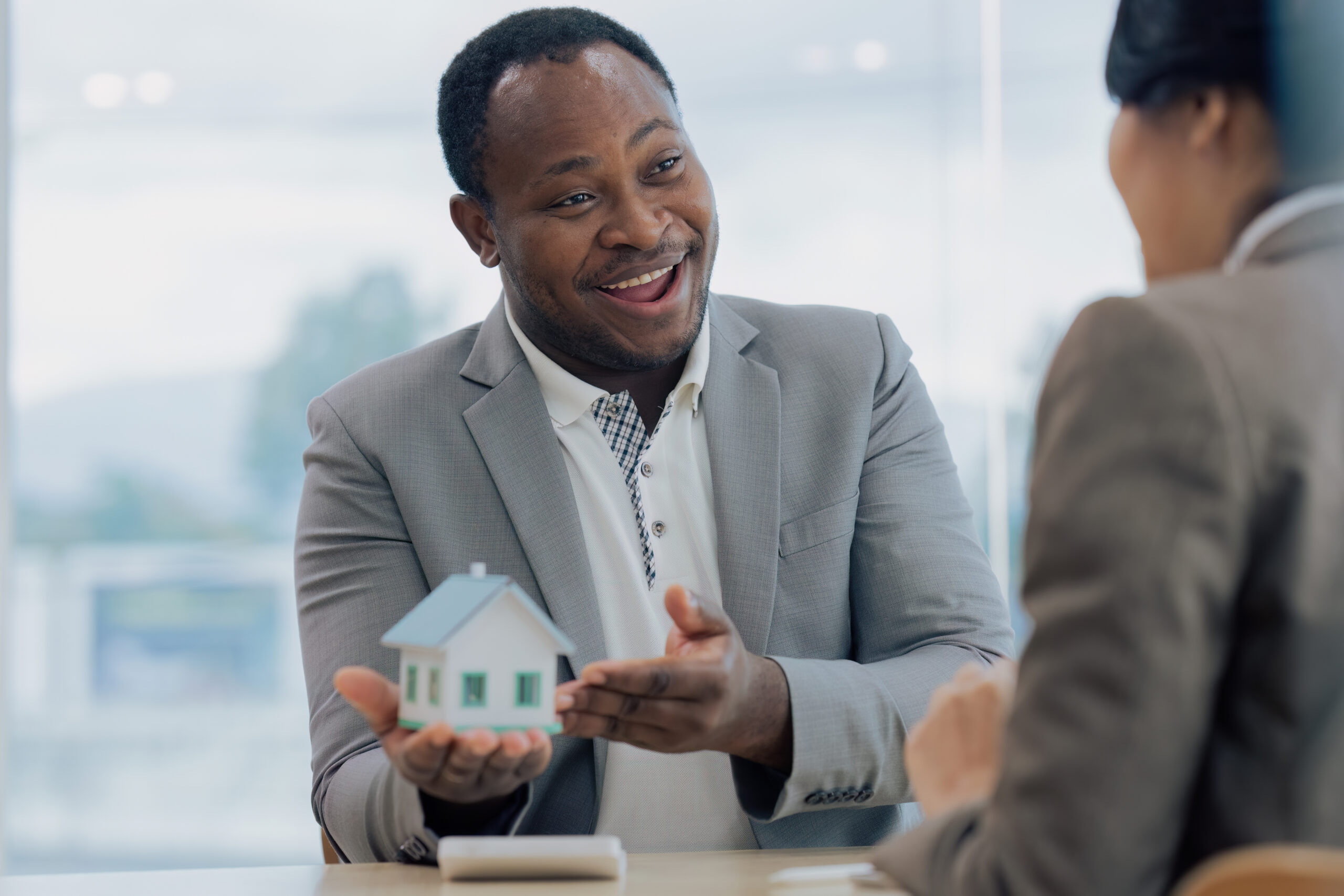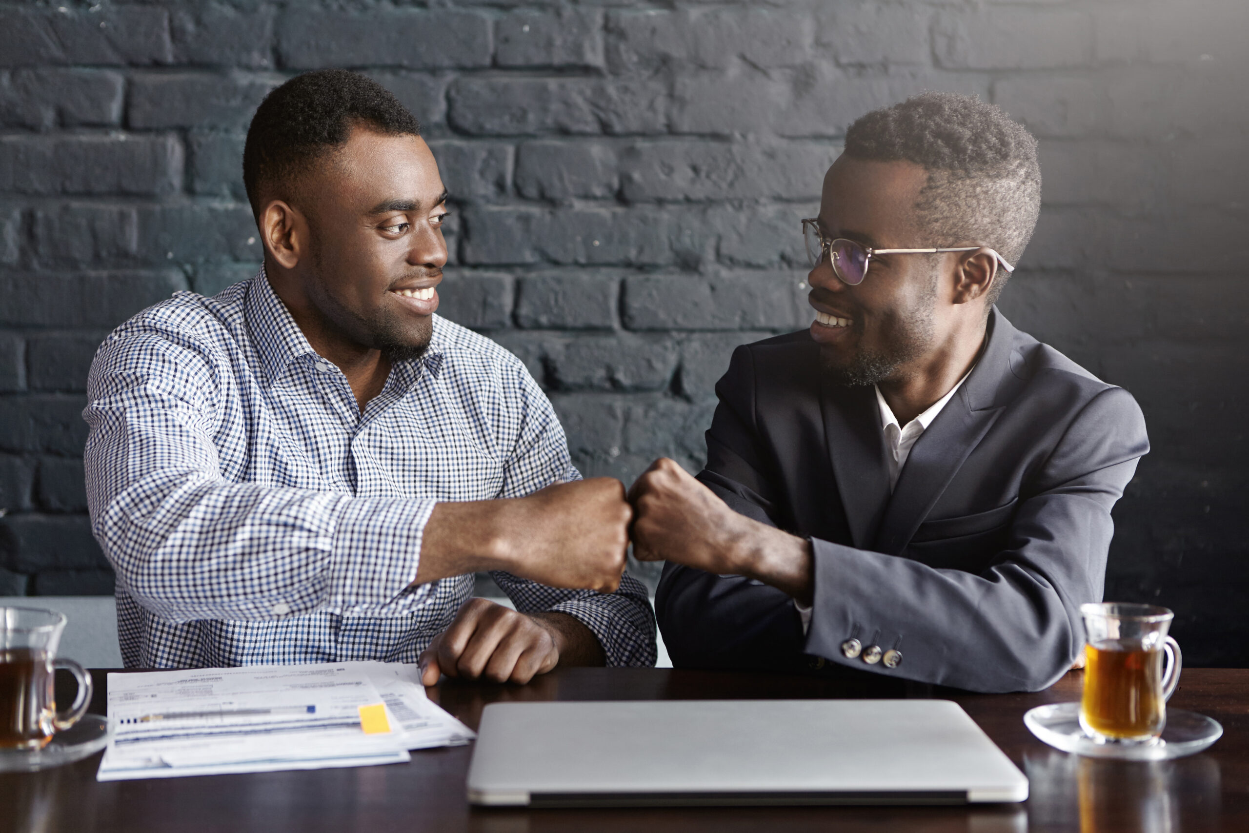 Multiethnic Caucasian and African American business people diverse multiracial men two male partners